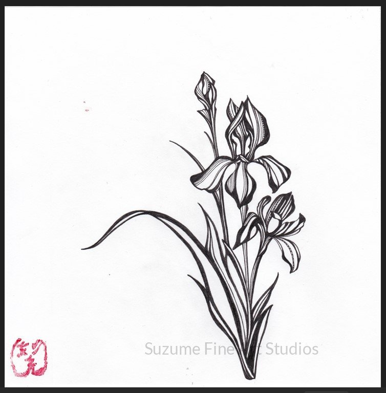 Within the Japanese Hanakotoba 花言葉 (lit. “Language of Flowers”), the Shoubu 木蓮 (Iris) symbolizes good news, courage, and protection from harm and misfortune.